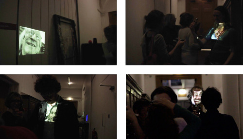 All cameras and receivers are connected to the same frequency (channel), and so participants can interfere in the projections of other participants. Participant perform together in the corridor using the furniture, their bodies, ceiling, floor, walls and other participants as projection surfaces and as things to look at through their wireless camera.
